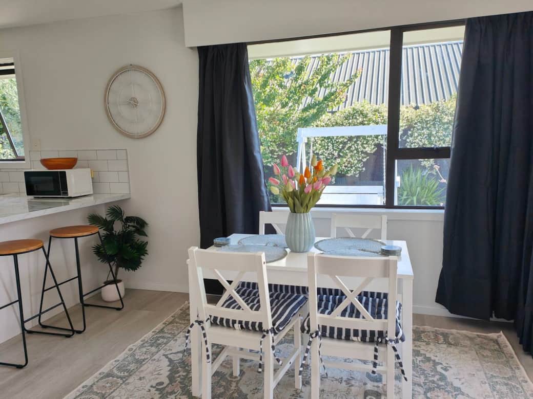 Relax in this comfortable two-bedroom home set in a quiet, leafy suburb of Christchurch. Ideal for families, couples, or work trips, it offers a calm retreat with everything you need for a short or extended stay. Just a 10-minute drive to the airport, with shops and local cafes nearby, it’s a convenient base while still feeling peaceful.